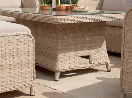 Please note many of our rattan weaves are made up of varying colour strands and the strands can vary in thickness due to the items being handmade. These variations can look slightly different once in your garden depending on the level of sunlight and the design of each set may mean your weave is woven in different configurations. The colour can also vary, in the morning some ranges may look a little greyer and in the afternoon the sun may pick out more beige tones. All our photos have been taken in different settings and lighting. All our items are handwoven; no weaving is identical throughout our sets. All finishing strands are pinned in place to assure they do not unravel.