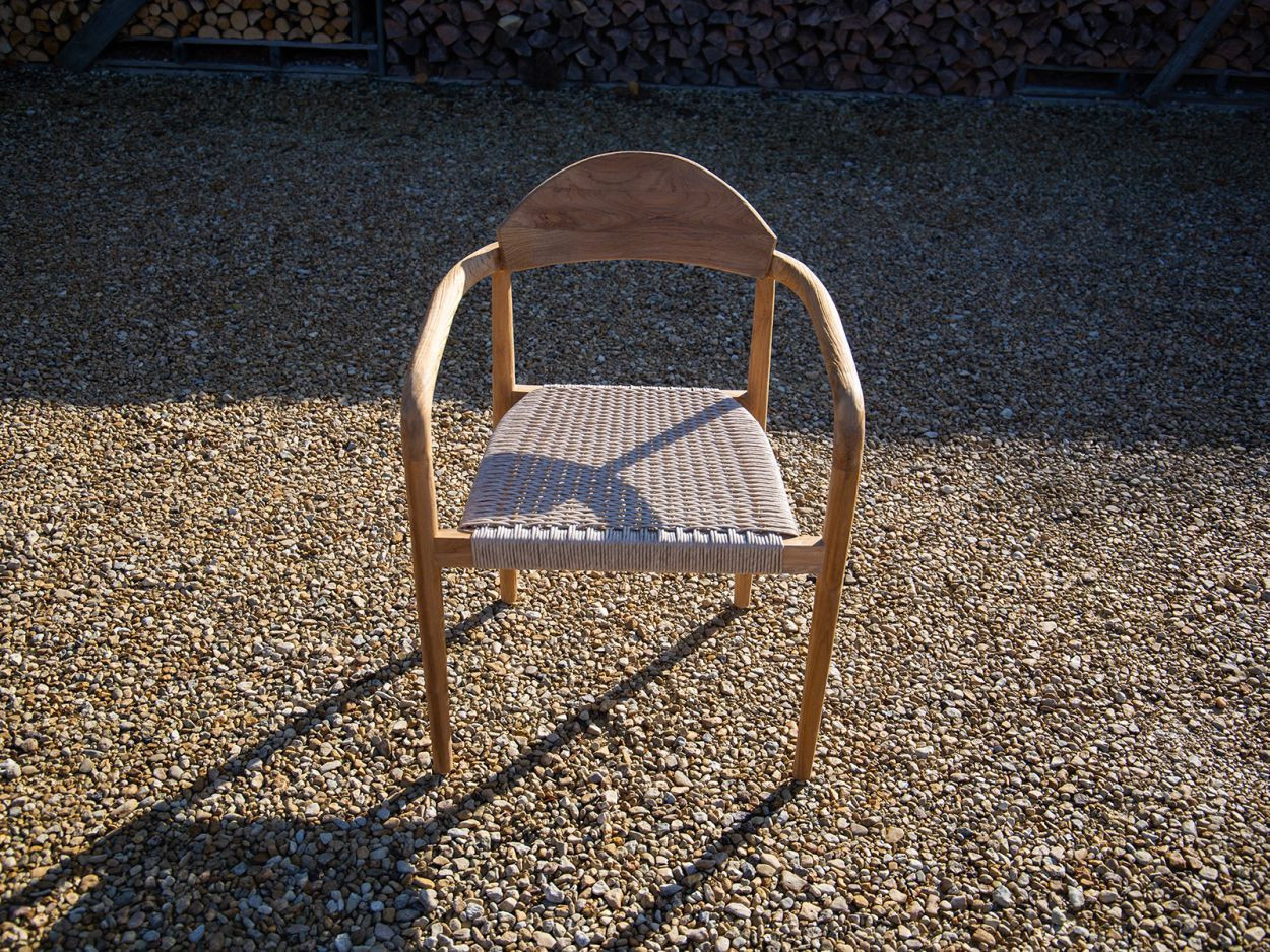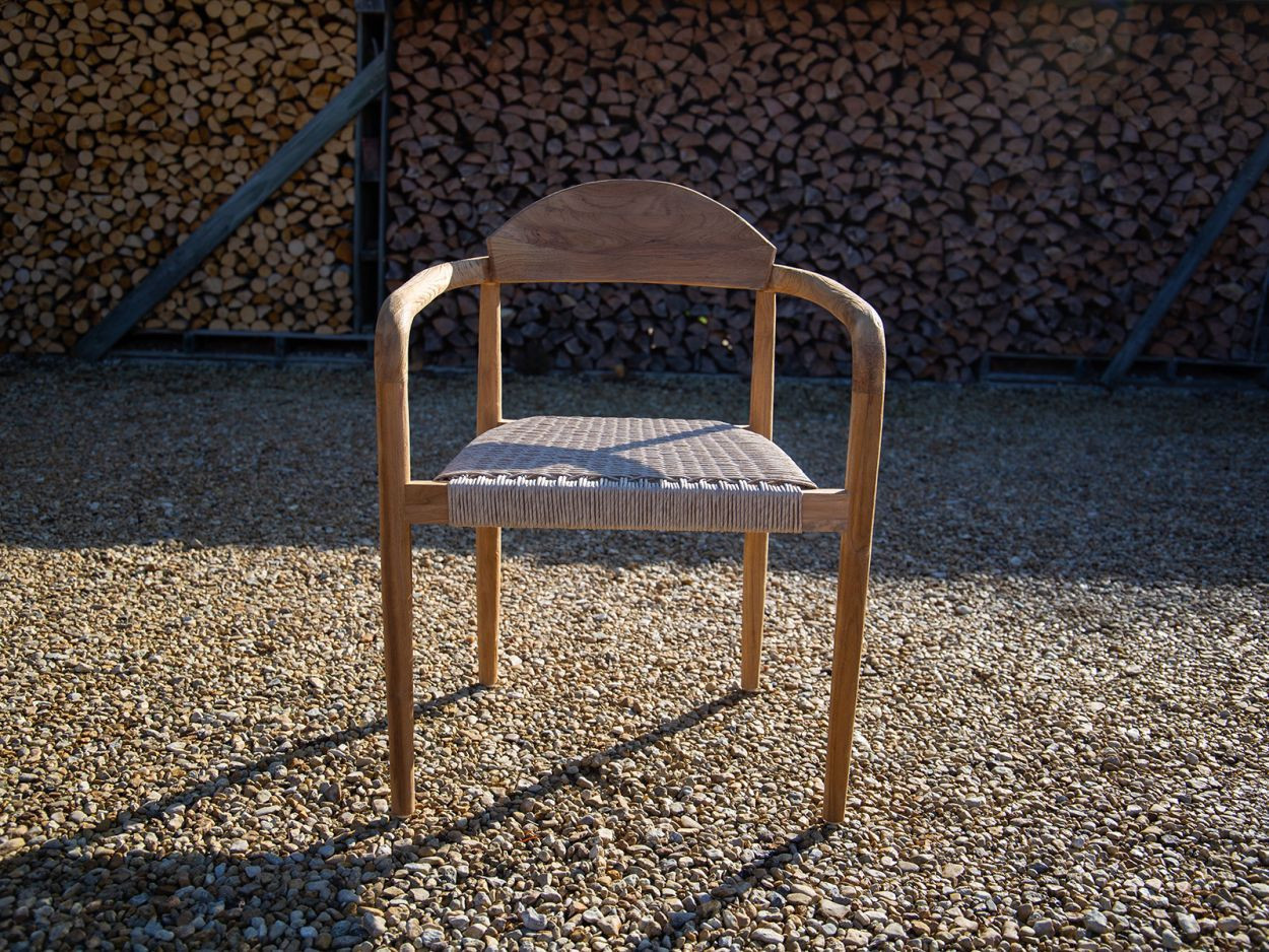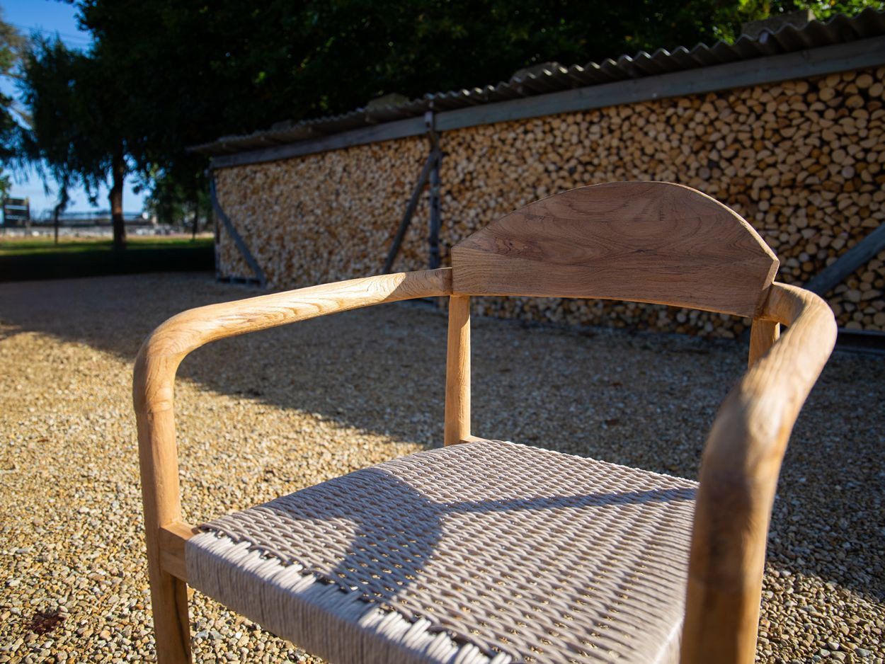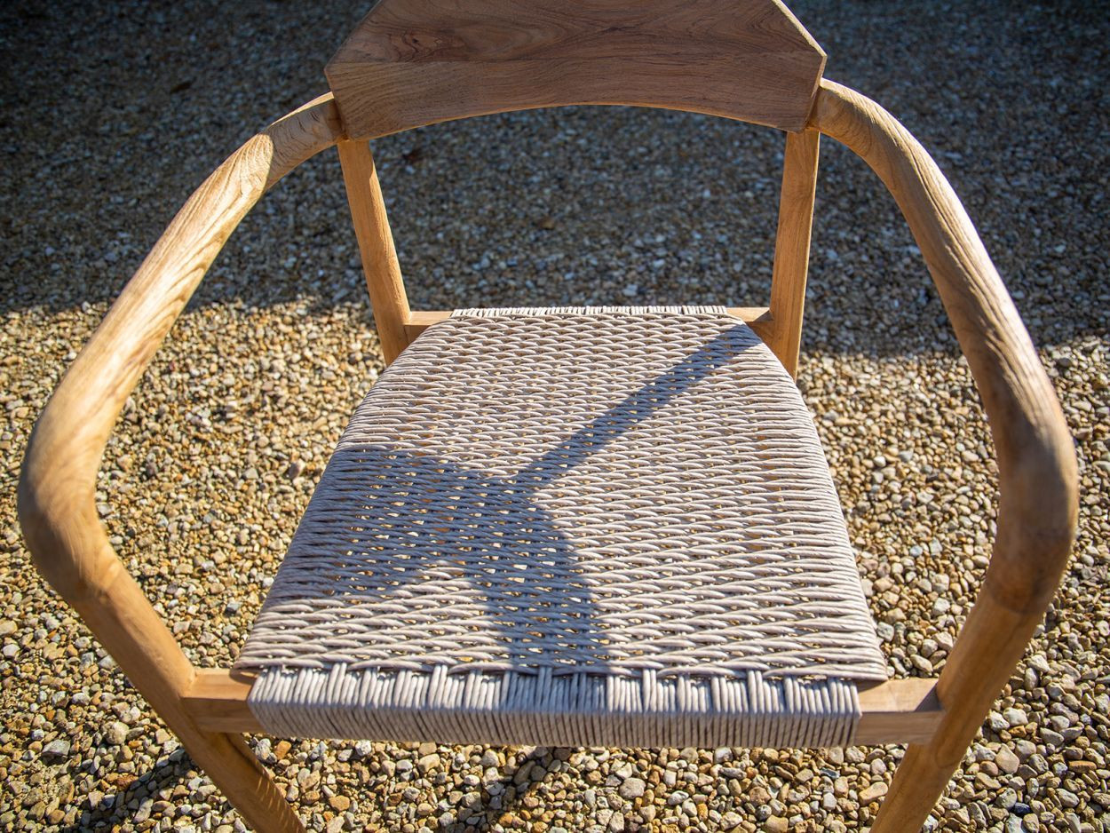 Paired with eight matching Bella dining chairs, the set offers generous comfort without sacrificing style. Each chair features the same reclaimed teak framework, with a gently curved backrest and all-weather woven seat. Designed to support long, lazy evenings around the table, they also stack neatly when not in use, making them a smart option for flexible spaces.