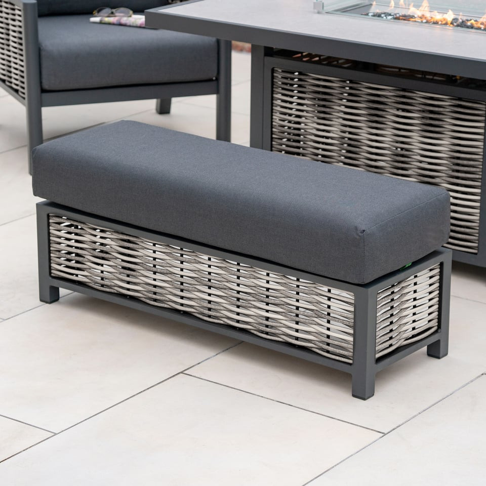 The Caleb 3 Seat Sofa Lounge Dining Set with Rectangular Firepit Table and Double Bench - marries the durability of metal and the timeless look of rattan together in one set. If you're finding it difficult to choose between materials, this might just make your life a little bit easier, and a whole lot more stylish.