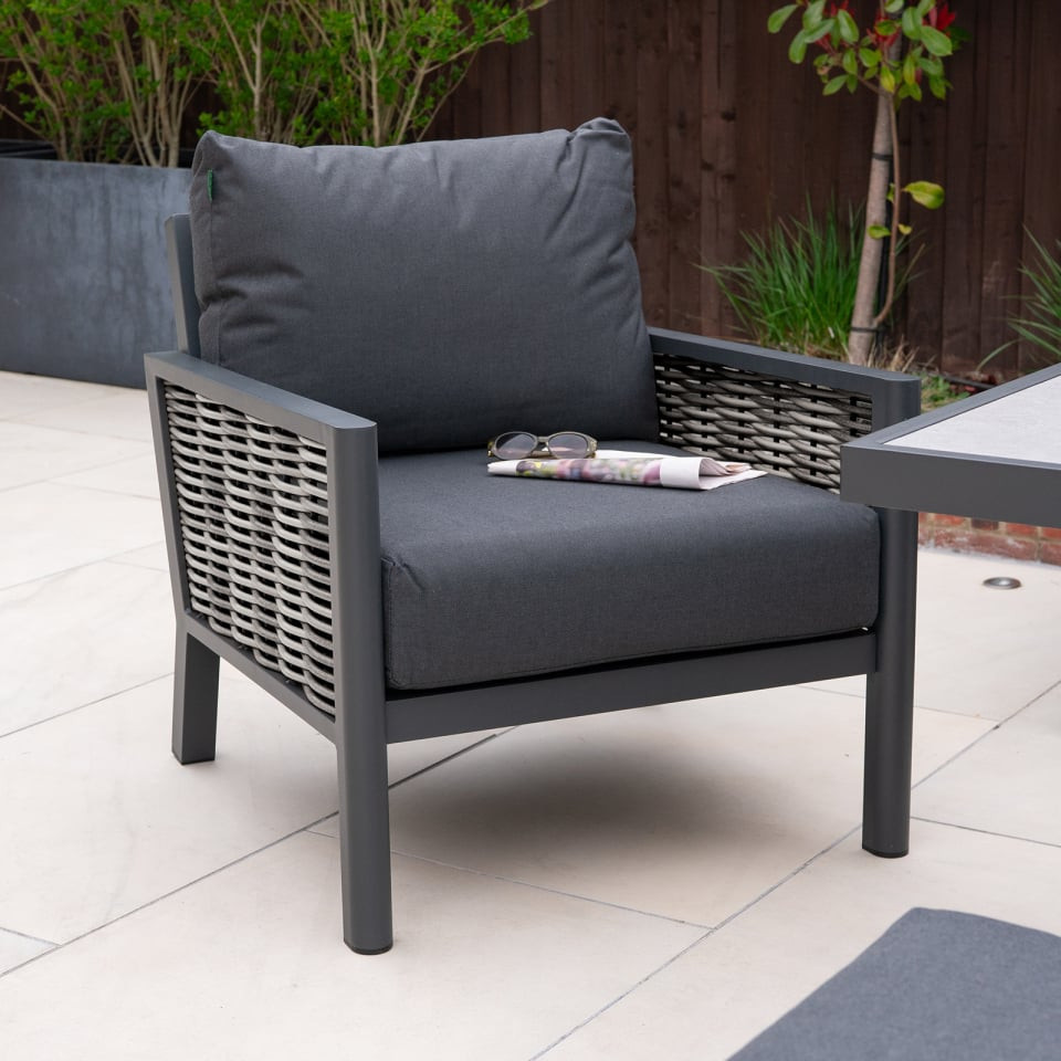 We love the 3 seat sofa as this gives you the chance to position the sofa as the main seating area of your garden, with the armchairs opposite or adjacent, creating a cosy conversational space. The mix of a sofa and armchairs provides symmetry, making it visually appealing in both small and large garden spaces. Plus, the armchairs can be moved around easily, allowing for quick reconfiguration based on your needs.