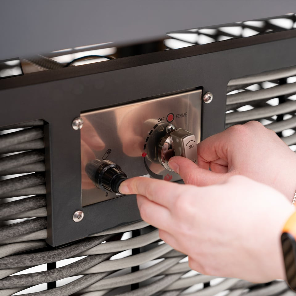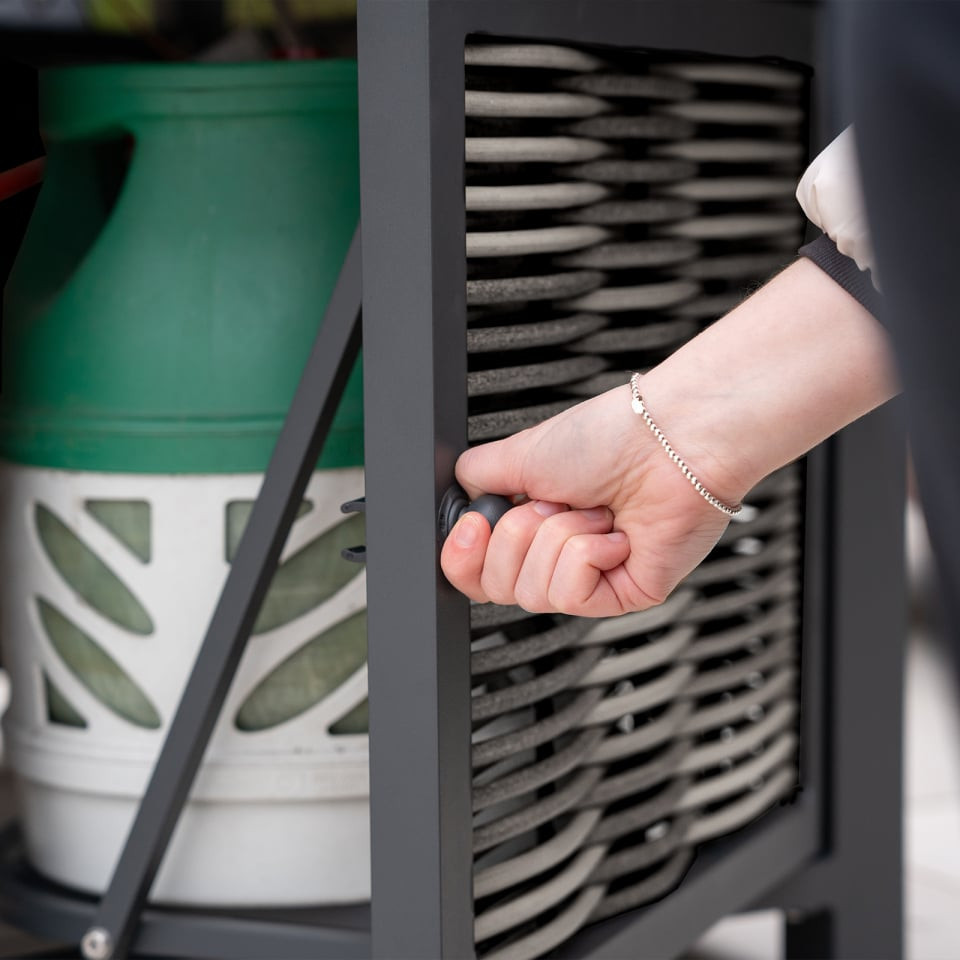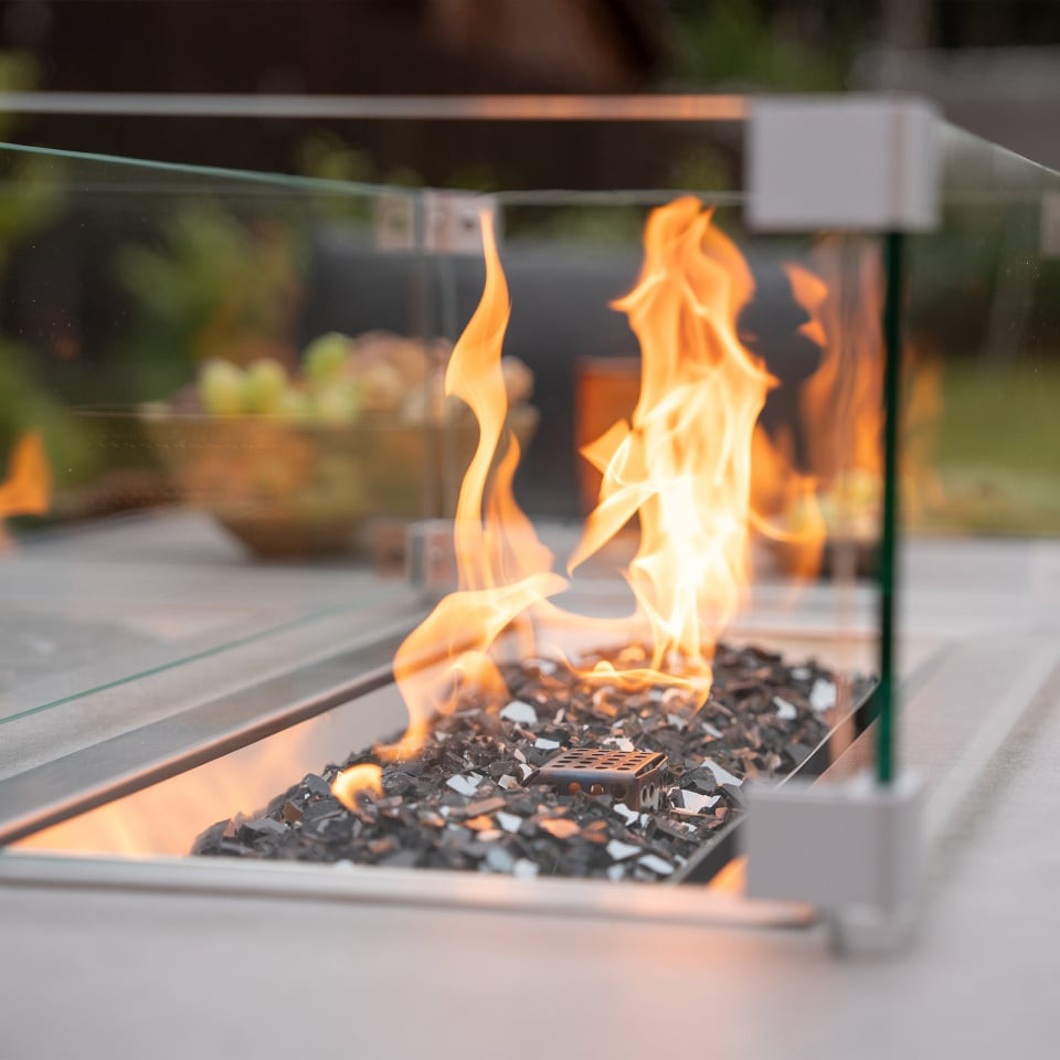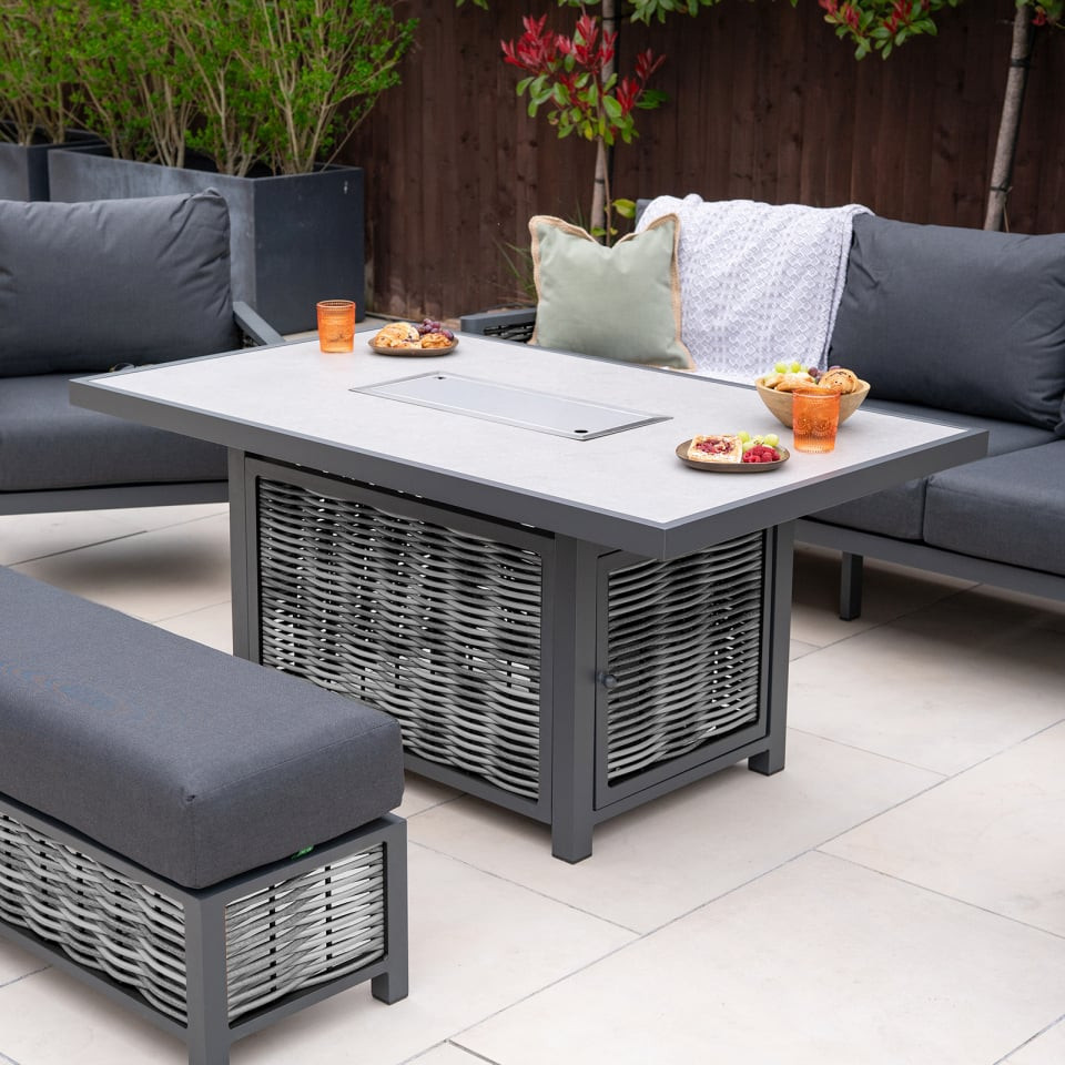 Turn up the heat with this firepit table, perfect for carrying on your garden days wall into the evening. By adding a firepit table to your garden, you're adding additional light and heat for you and your guests to enjoy. Sintered stone is built into the table top frame of the table, not only adding a durable element but also style.