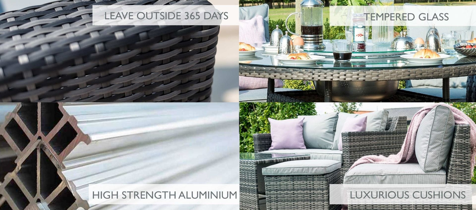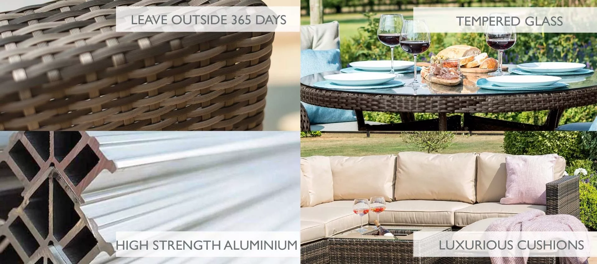Please note many of our rattan weaves are made up of varying colour strands and the strands can vary in thickness due to the items being handmade. These variations can look slightly different once in your garden depending on the level of sunlight and the design of each set may mean your weave is woven in different configurations. The colour can also vary, in the morning some ranges may look a little greyer and in the afternoon the sun may pick out more beige tones. All our photos have been taken in different settings and lighting. All our items are handwoven; no weaving is identical throughout our sets. All finishing strands are pinned in place to assure they do not unravel.