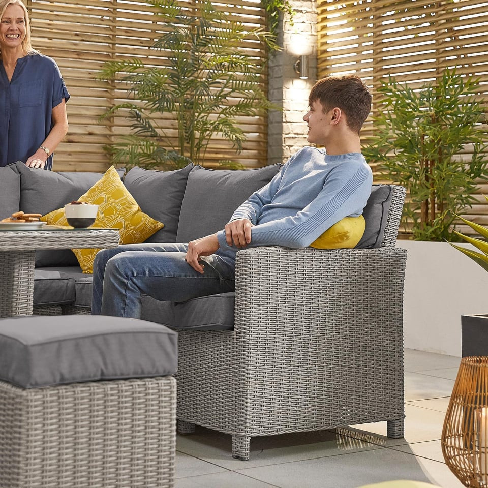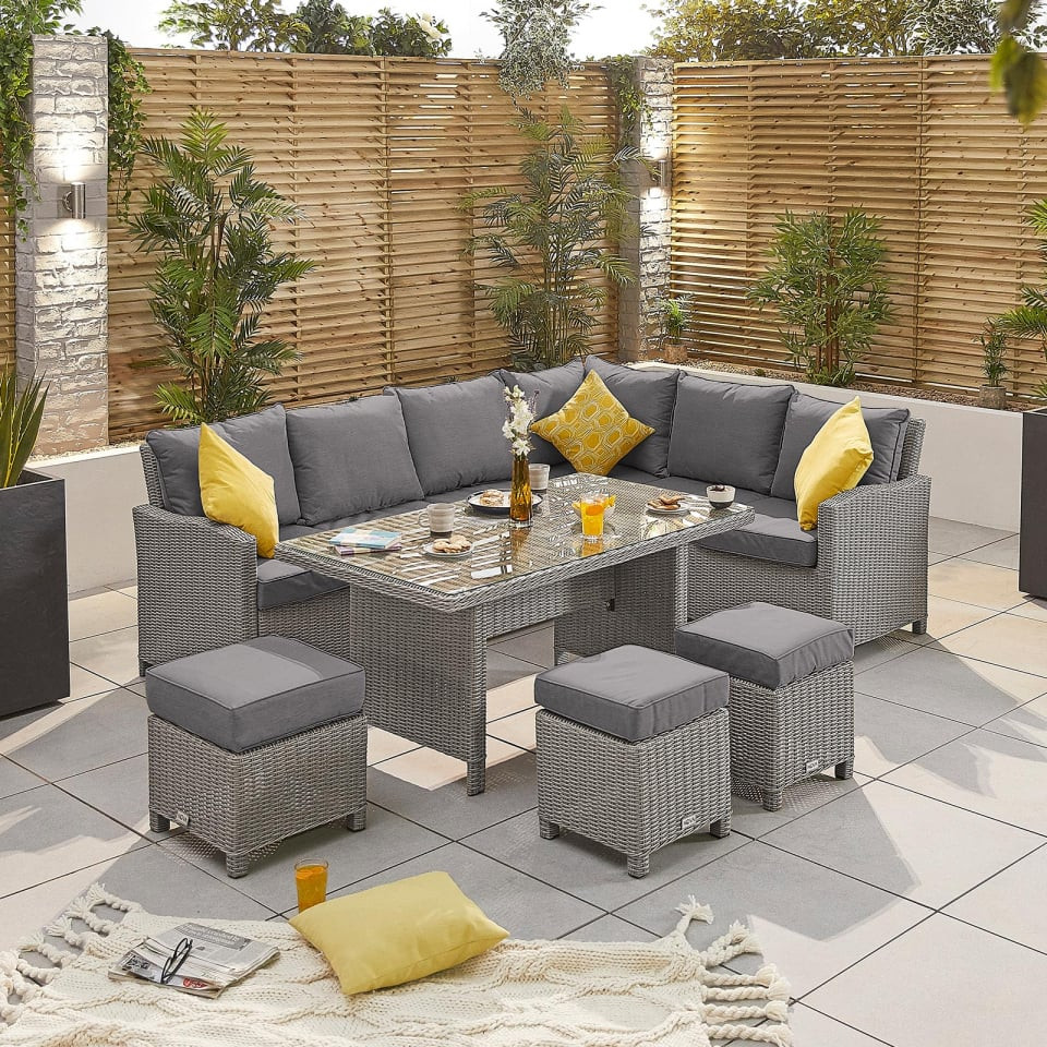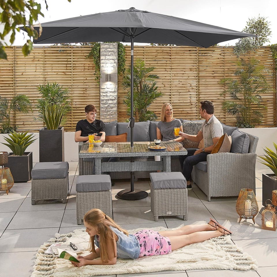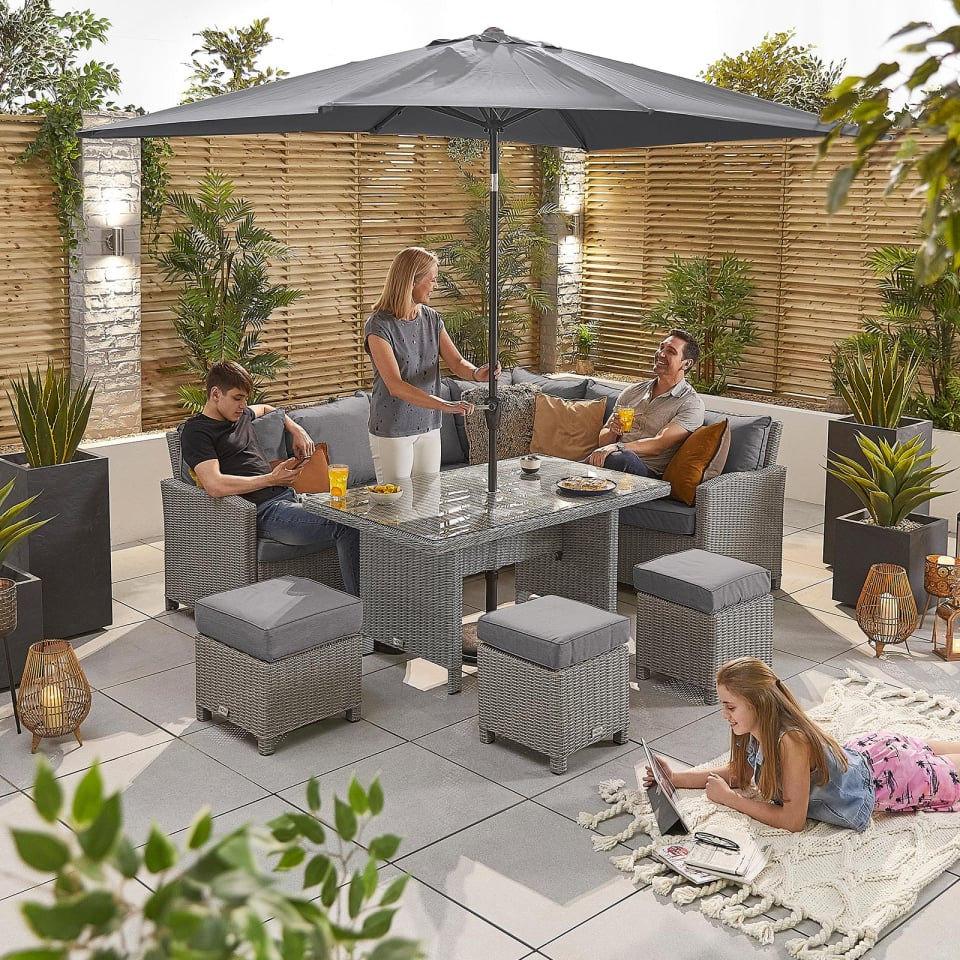 The Nova - Heritage Right Hand Ciara Rattan Corner Dining Set with Parasol Hole - Slate Grey is perfect for all garden spaces and patios.