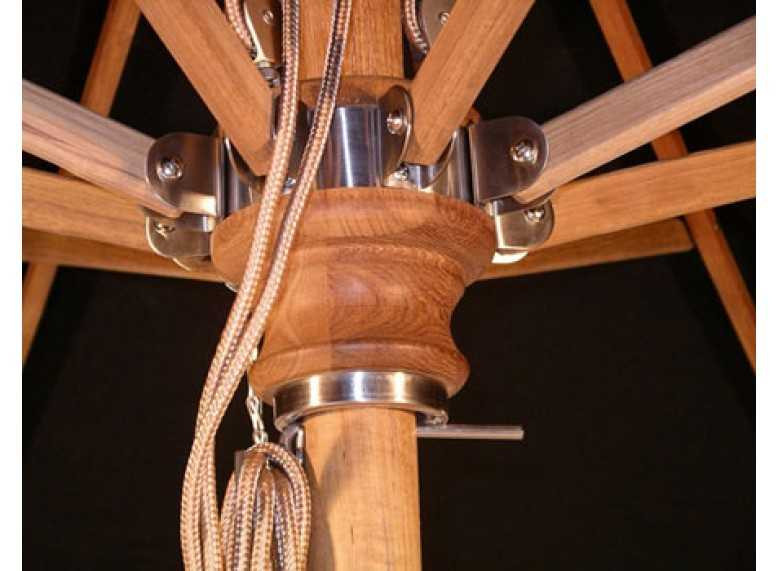 Diamond Teak Parasols are far superior to any other timber use for outdoor parasols - it has a very high natural oil content and very dense grain making it less likely to crack or split with exposure to the elements over time.