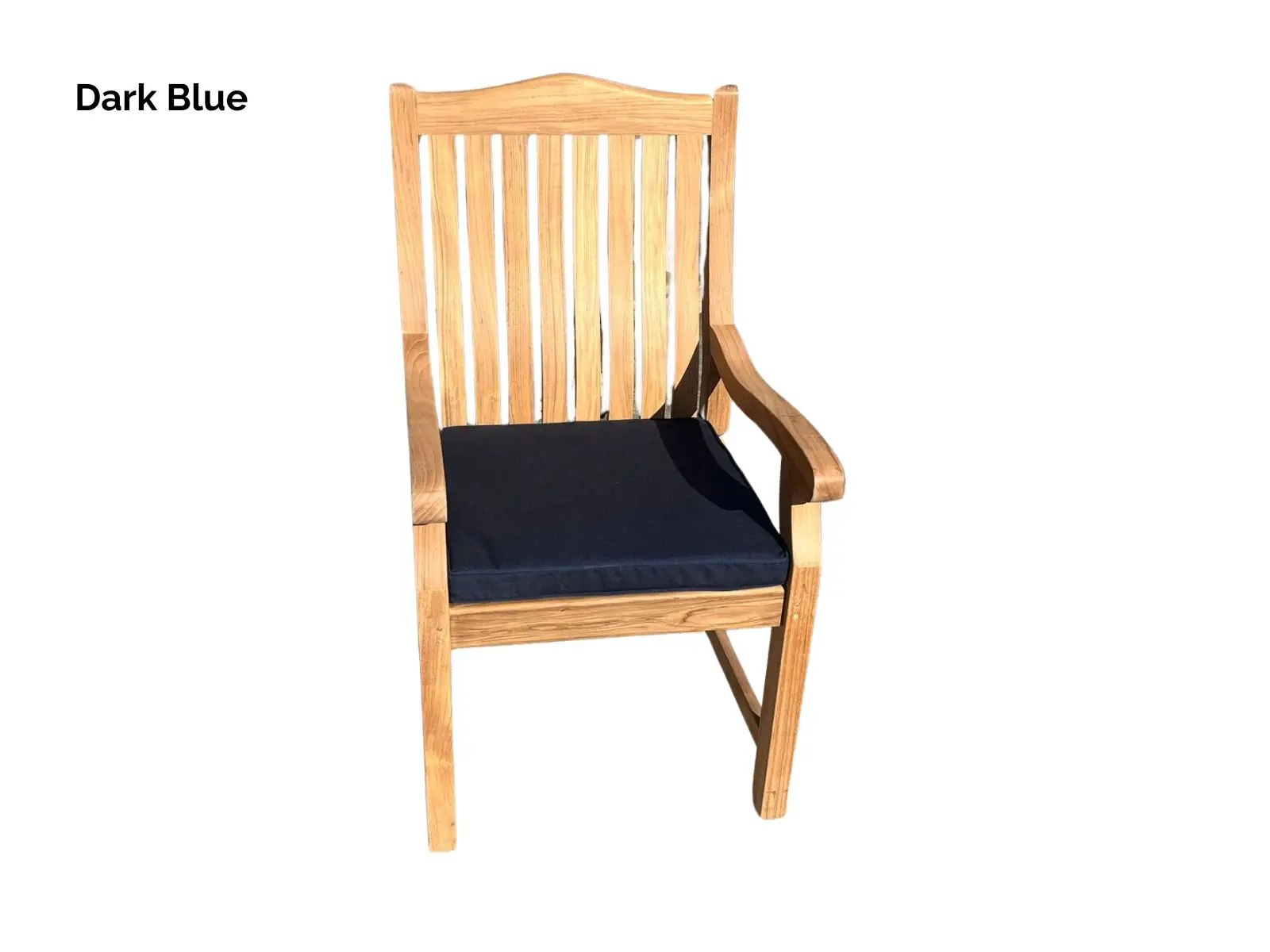 All cushions are made to Uk Fire retardant standards.All covers are fully match resistant.Garden furniture cushion dimensions:Length: 50cmWidth: 52cmThickness: 8cm + valanceSpecially made from acrylic, outdoor cushions from Kingdom Teak provide
