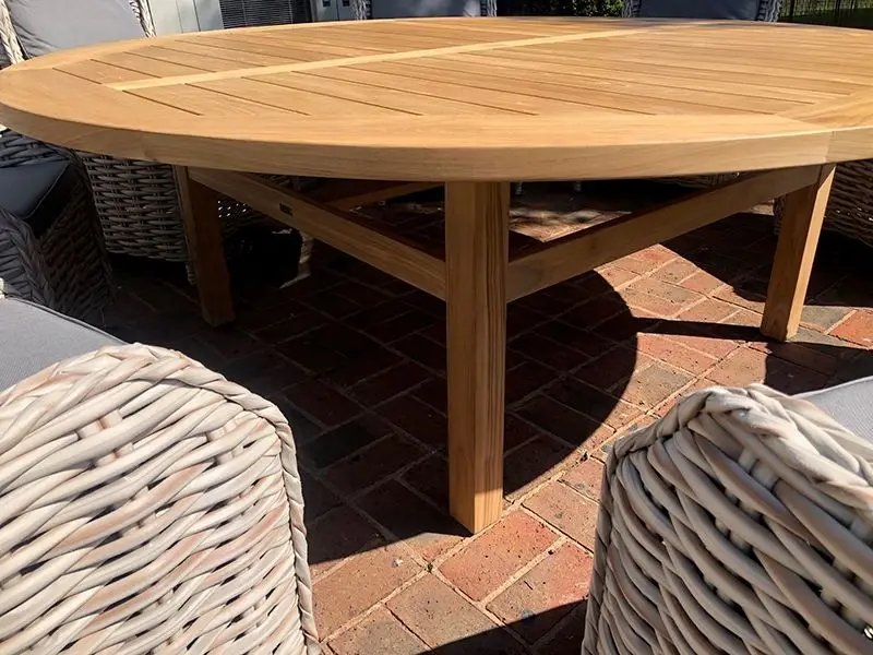 This table is manufactured from grade A teak sourced from Indonesia. Its high quality is evident with just a smooth touch as you cannot feel any imperfections or joins upon the surface!