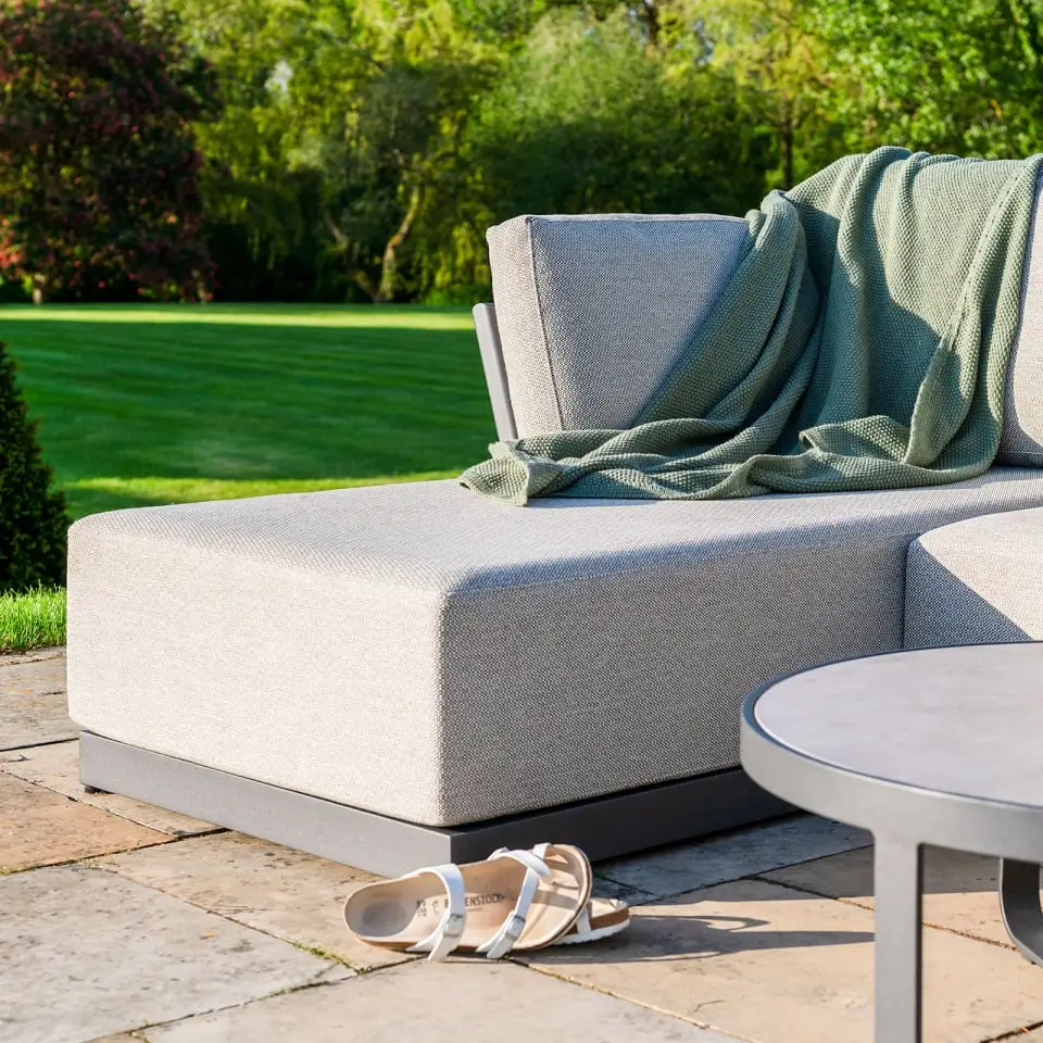 We've thought about everything with this set. Even if your patio ground is slightly uneven, or slopes down (as it should) we've added adjustable foot caps to the bottom of the sofa, giving you the freedom to adjust your sofa and help it sit flat. No more shoving coasters under legs to stop it from wobbling. We've created a coffee table to finish off your sofa set nicely. The matching grey aluminium framing and 5mm ceramic glass held on with suction rings, it's incredibly easy to keep clean and tidy, and looking stylish all year round.
