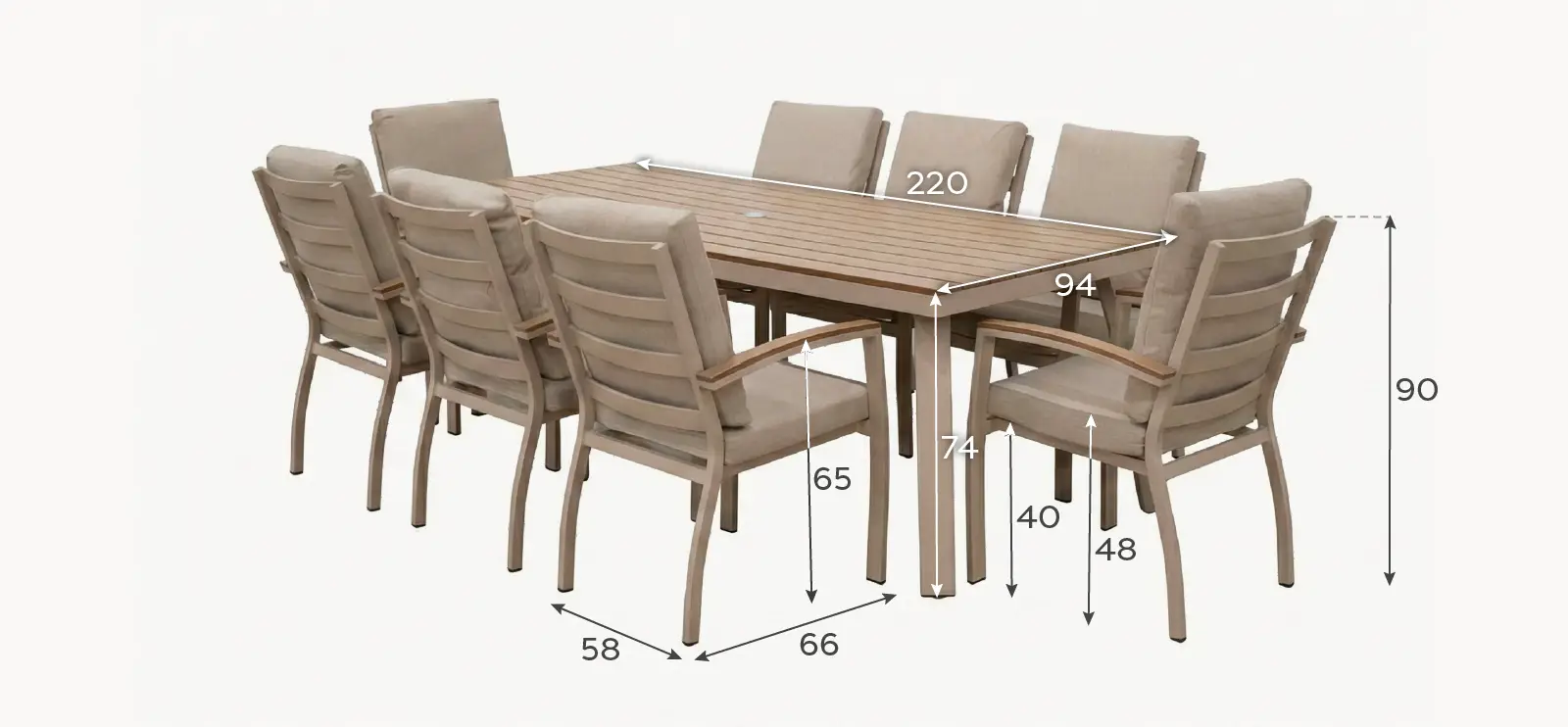 Combining refined aesthetics, exceptional comfort, and sustainable materials, Leah 8 Seat Dining Set - 2.2*1.0m Rectangular Table - grey is designed to transform outdoor spaces into stylish extensions of the home.