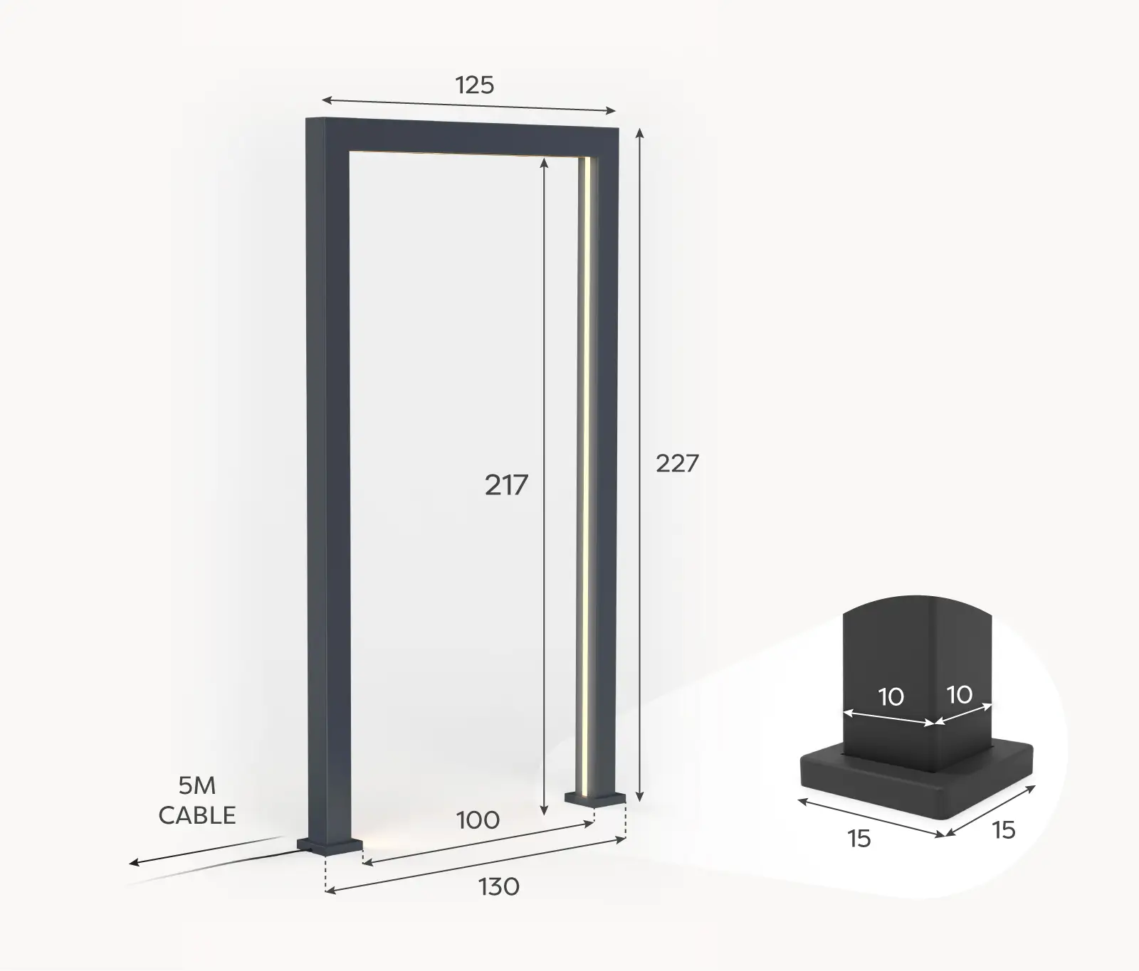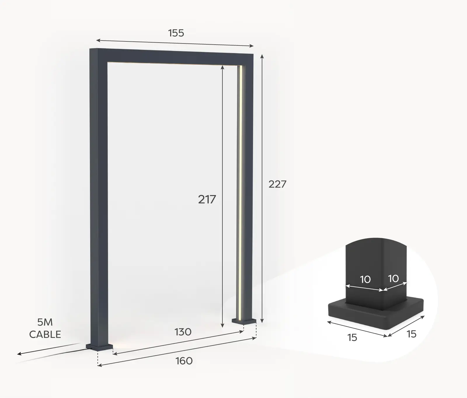 Legacy PergolArch Aluminium LED Garden Archway in Pebble