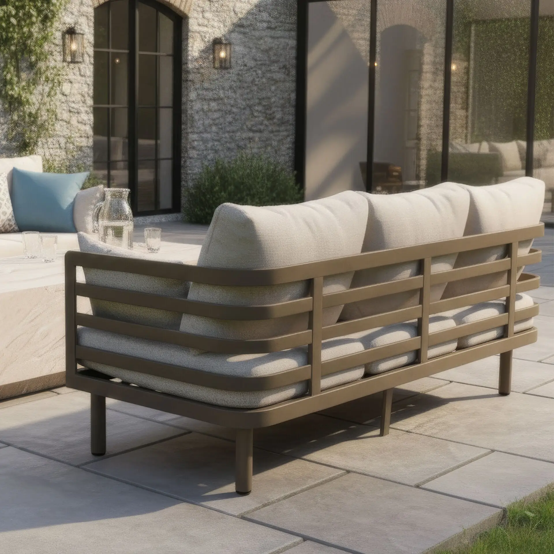 Metro Aluminium 3 Seat Sofa Armchairs Stone Coffee Table Set