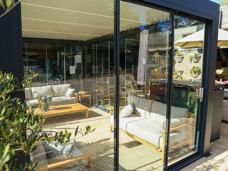 Our Bioclimatic Pergolas have doors that are designed using high-quality transparent glass and an easily operational sliding feature with a soft close finish to provide a soundproof room to be enjoyed in your outdoor space.