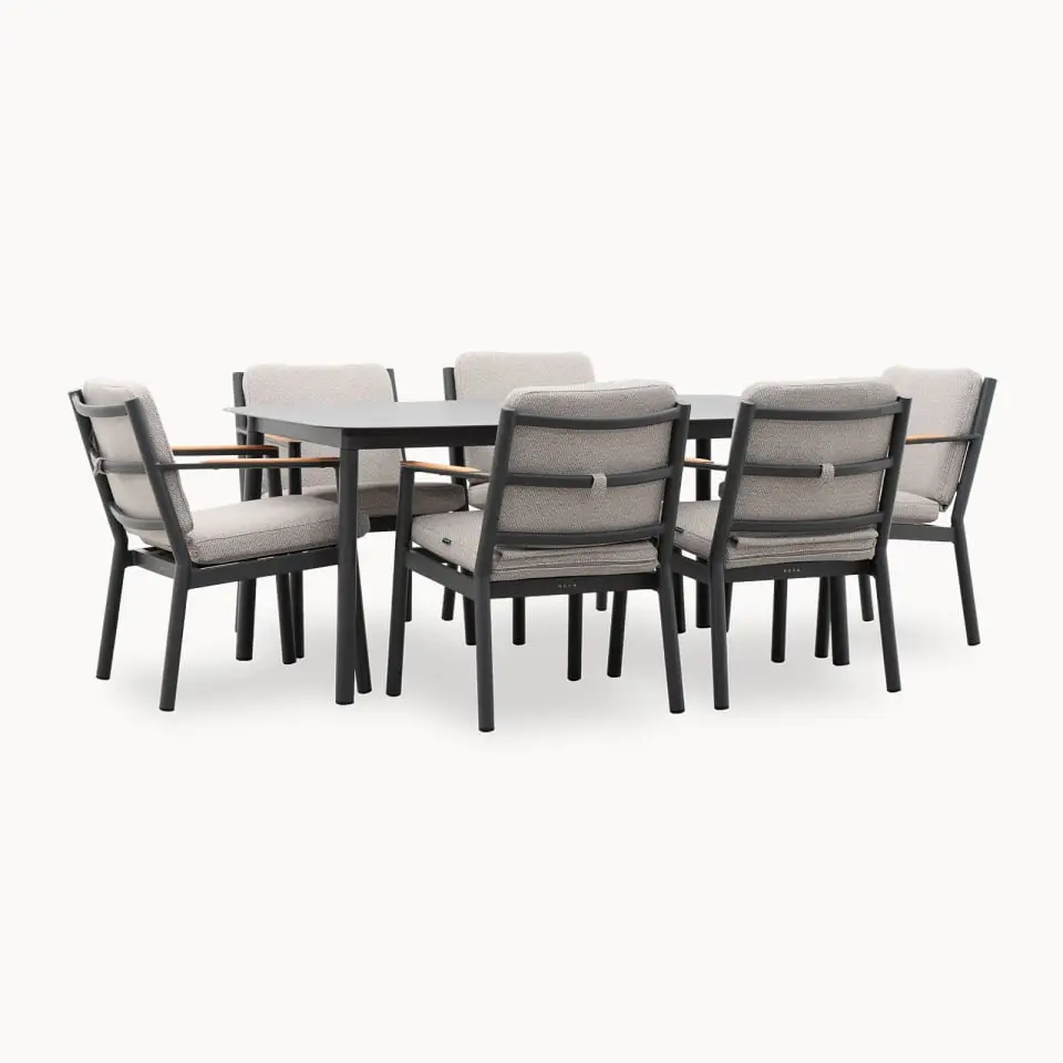 Sculpted for style and built for comfort, the Monti 6 Piece Seat Dining Set with Rectangular Table is your ultimate outdoor statement piece. Designed with a bold, masculine edge, this premium 'lounging' and 'dining' range effortlessly balances form and function – ideal for those who appreciate clean lines, quality craftsmanship, and contemporary comfort.