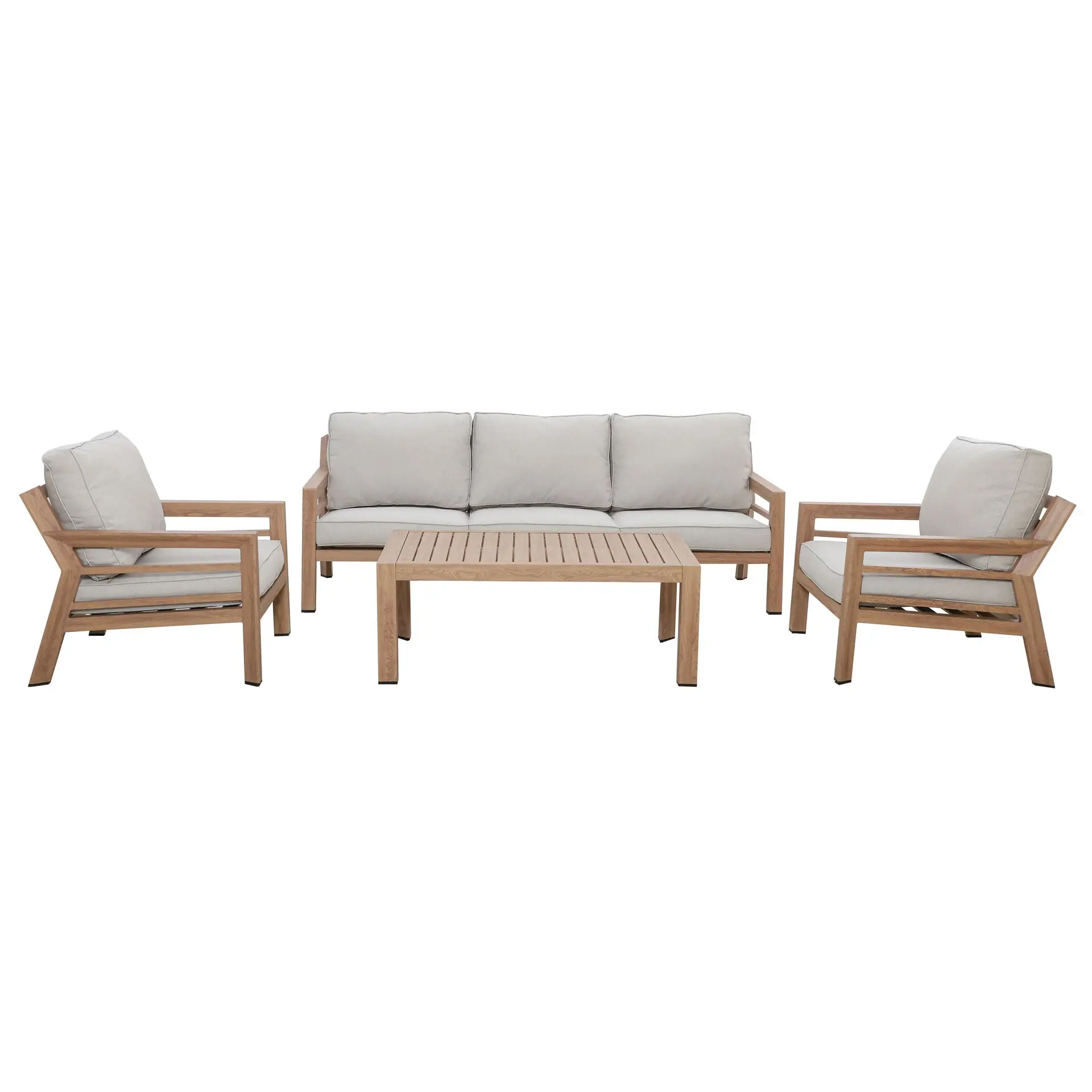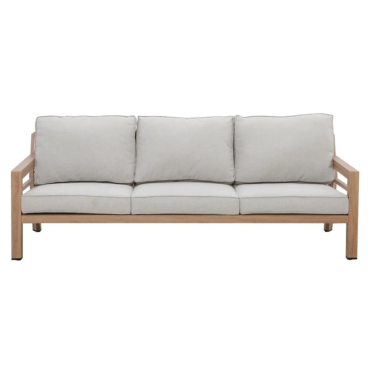 Elevate your outdoor living space with the New York 3 Seat Sofa Set – Wood Effect, 2026 edition. Designed for effortless style and long-lasting durability, this set features a lightweight aluminium frame finished in an elegant wood-effect wrap, offering the warmth of natural timber with none of the maintenance.