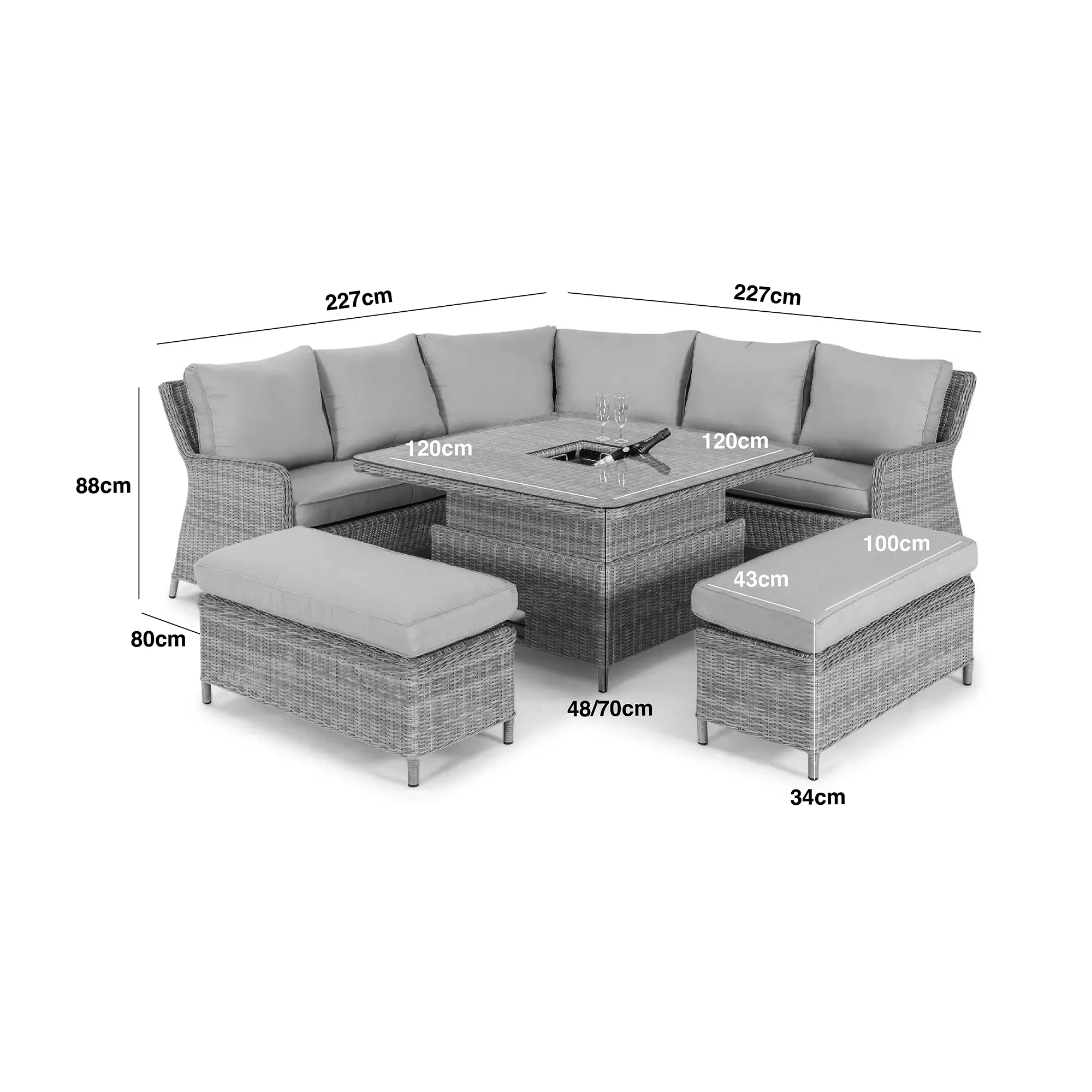 Royal Corner Bench Set with Rising Table incorporates new improvements with tried and tested popular features of some of our best-selling sets. With generous benches to allow for extra seats, the convenient corner seating space optimises space in your garden.