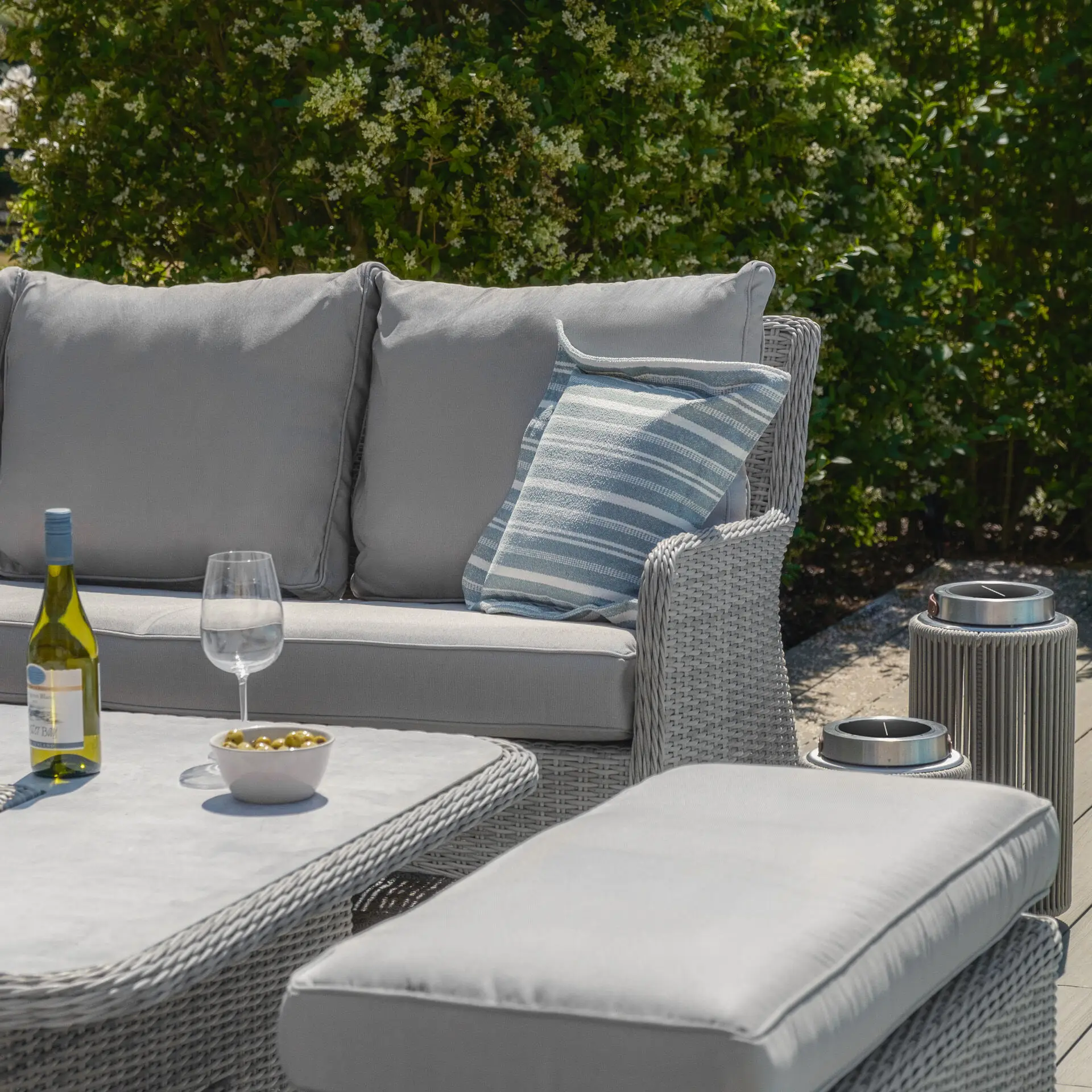 Please note many of our rattan weaves are made up of varying colour strands and the strands can vary in thickness due to the items being handmade. These variations can look slightly different once in your garden depending on the level of sunlight and the design of each set may mean your weave is woven in different configurations. The colour can also vary, in the morning some ranges may look a little greyer and in the afternoon the sun may pick out more beige tones. All our photos have been taken in different settings and lighting. All our items are handwoven; no weaving is identical throughout our sets. All finishing strands are pinned in place to assure they do not unravel.