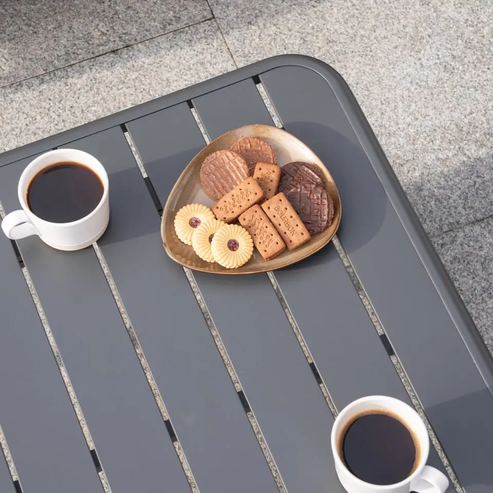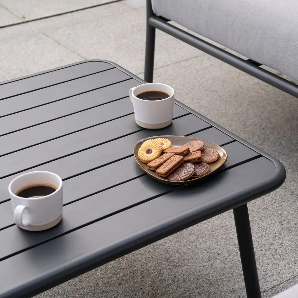 Your Piper set is finished off with a matching aluminium coffee table, the perfect place for drinks and snacks.