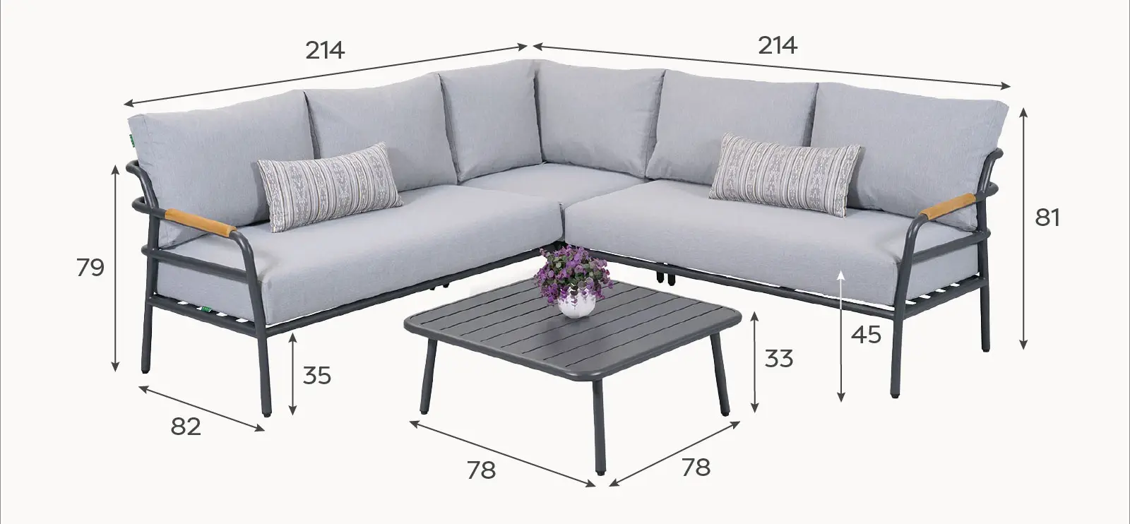 Piper Aluminium Wood Corner Sofa Lounging Set