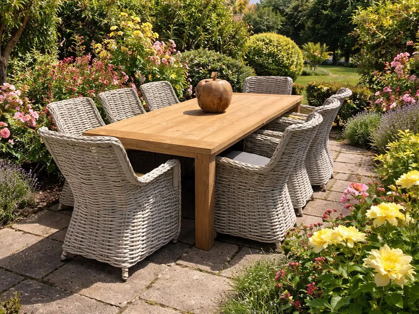 Twice a year, apply Maze's protector to your wooden furniture. This protective treatment helps shield the wood from environmental elements and extends its lifespan. Apply the protector in autumn to prepare for winter conditions and again in spring to safeguard the furniture for warmer weather ahead.