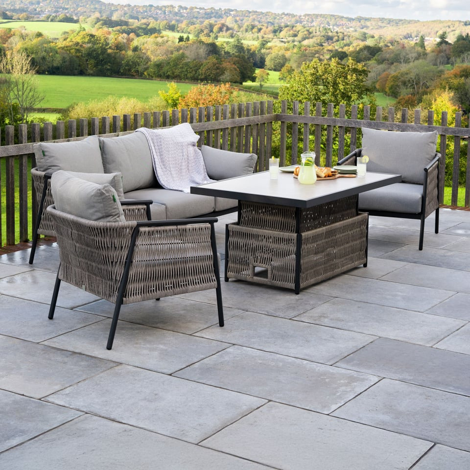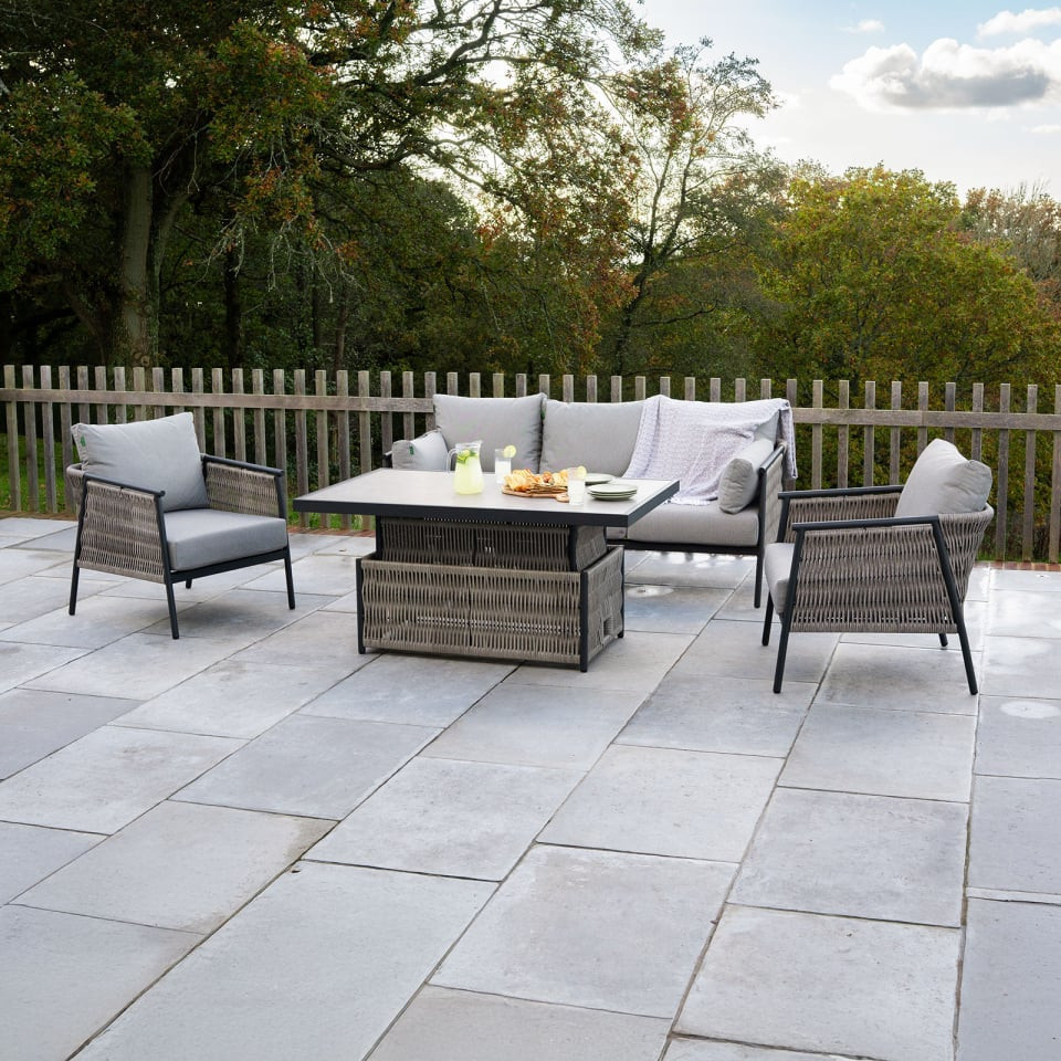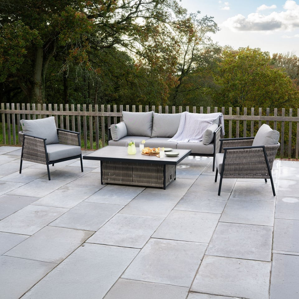 This sofa and armchair design allows you to position the set how you want, whether that's sofa one side and armchairs the other, or armchairs at the ends of the table. It's however it best suits your garden and patio layout.