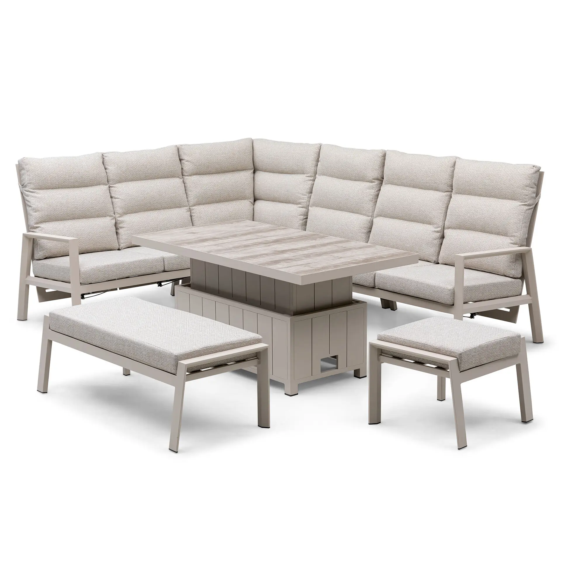 With Rising Table, Footstools & Bench - Latte