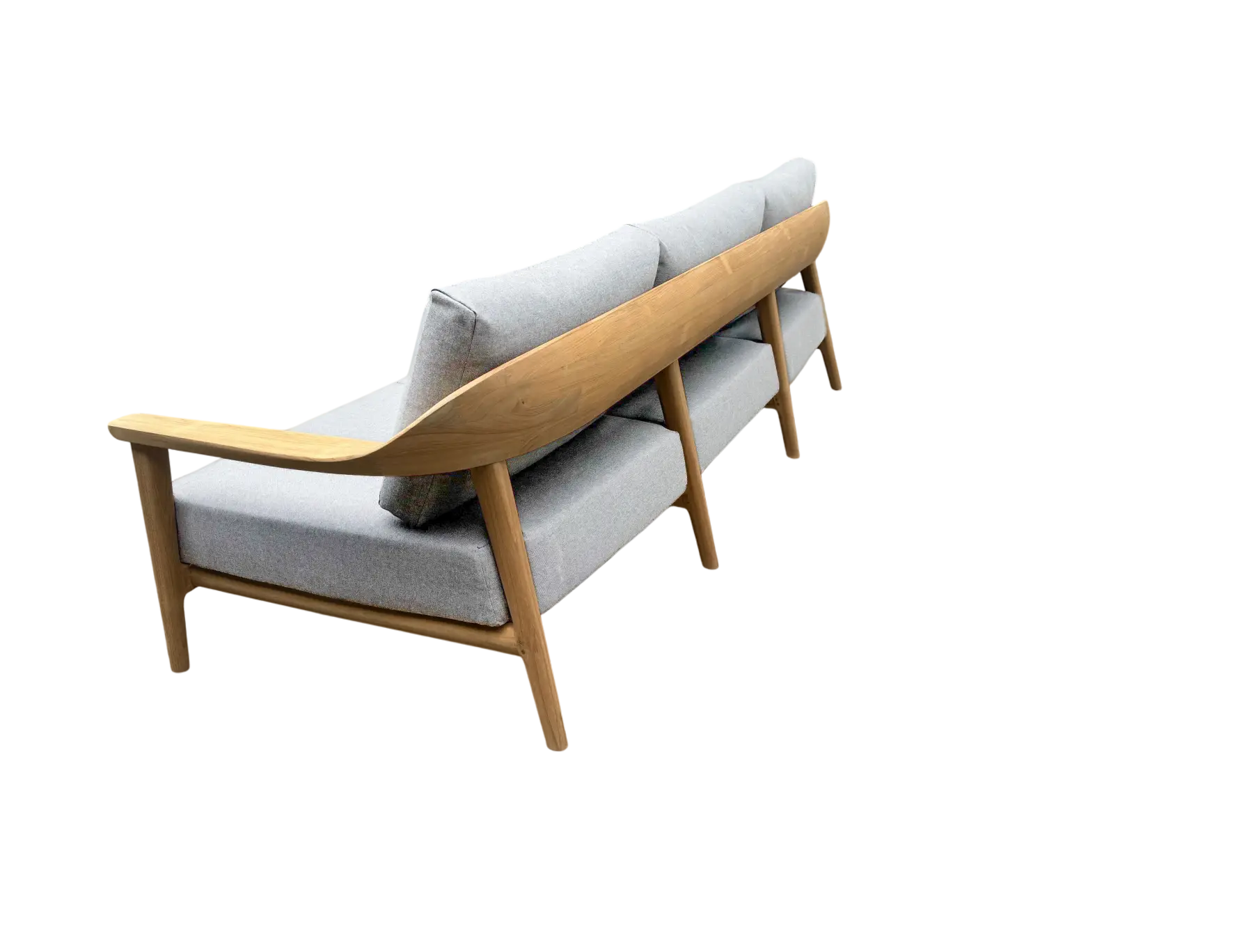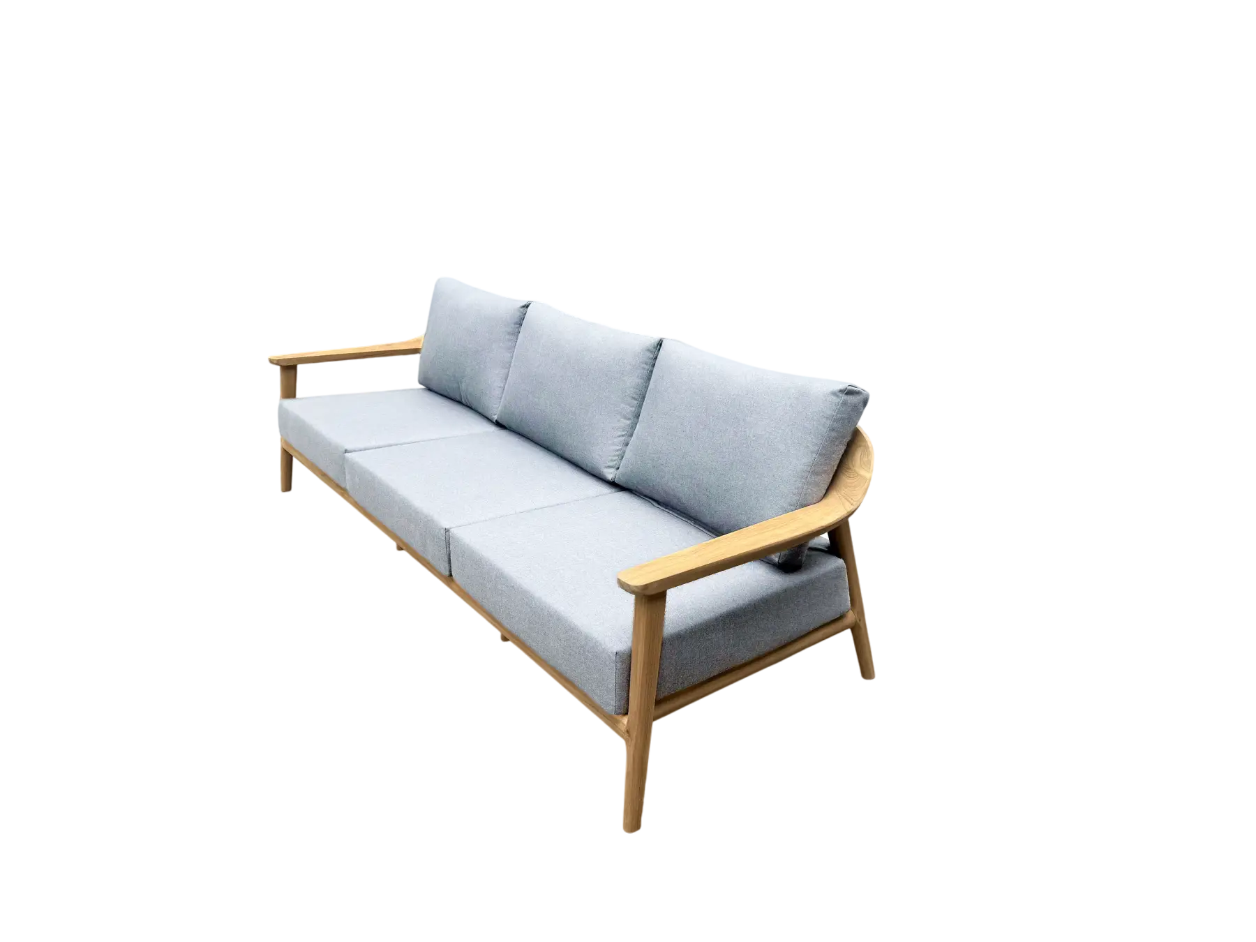 The Veluta Curved 3 Seater Sofa combines sculptural teak craftsmanship with refined contemporary design. Its flowing curved frame is handcrafted from solid FSC®-certified teak, celebrating the natural warmth and character of the wood while offering strength and longevity.