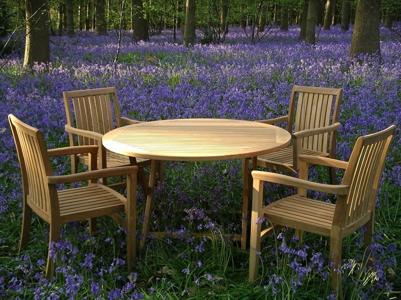 Set Includes: 120cm Diameter Henley FSC Certified Folding Teak Table / Warwick FSC Certified Stacking Armchairs x 4