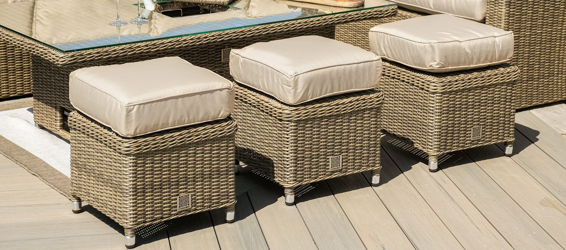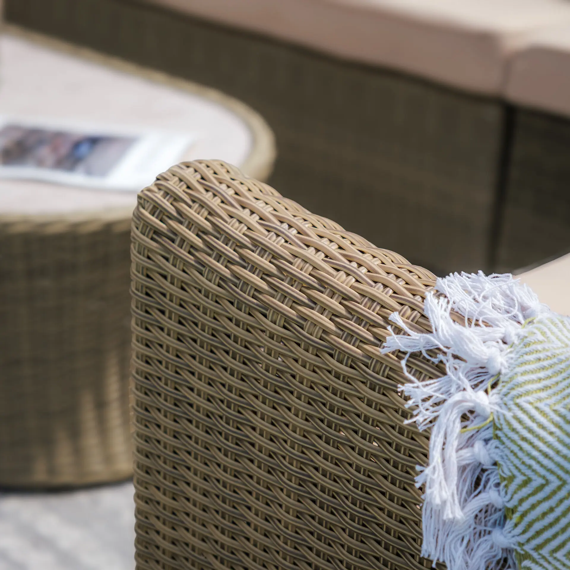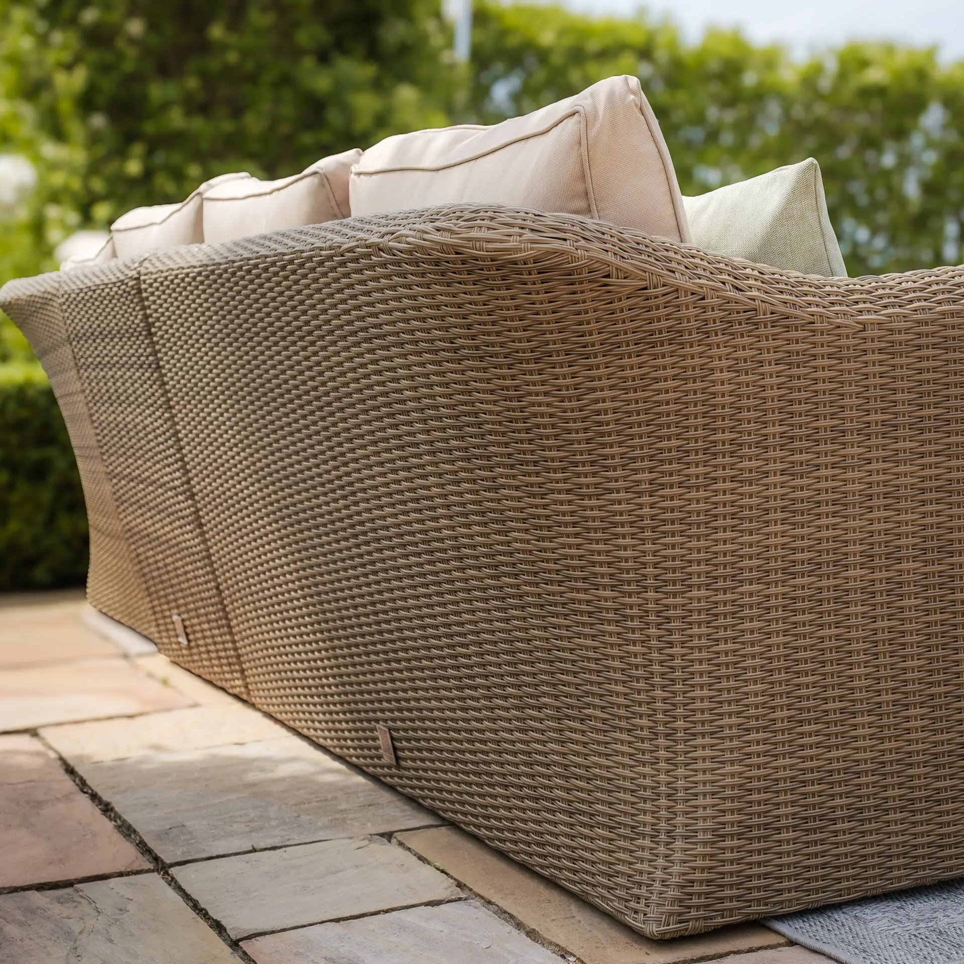 Please note many of our rattan weaves are made up of varying colour strands and the strands can vary in thickness due to the items being handmade. These variations can look slightly different once in your garden depending on the level of sunlight and the design of each set may mean your weave is woven in different configurations. The colour can also vary, in the morning some ranges may look a little greyer and in the afternoon the sun may pick out more beige tones. All our photos have been taken in different settings and lighting. All our items are handwoven; no weaving is identical throughout our sets. All finishing strands are pinned in place to assure they do not unravel.