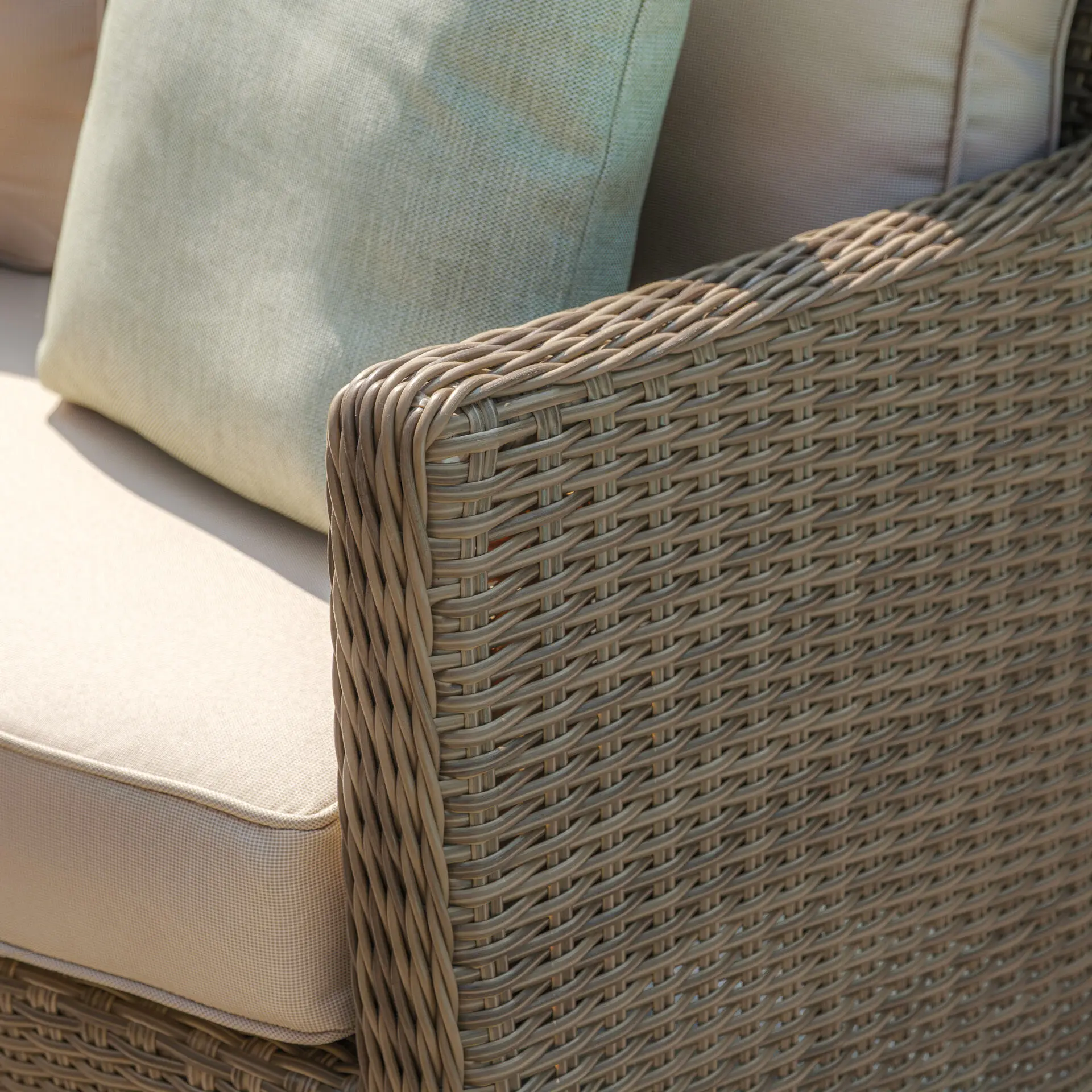 Please note many of our rattan weaves are made up of varying colour strands and the strands can vary in thickness due to the items being handmade. These variations can look slightly different once in your garden depending on the level of sunlight and the design of each set may mean your weave is woven in different configurations. The colour can also vary, in the morning some ranges may look a little greyer and in the afternoon the sun may pick out more beige tones. All our photos have been taken in different settings and lighting. All our items are handwoven; no weaving is identical throughout our sets. All finishing strands are pinned in place to assure they do not unravel.